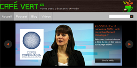 Café Vert est un site internet qui propose chaque mois une émission de 5 minutes en vidéo. Une présentatrice introduit des sujets qui sont tous reliés à l’écologie et au développement durable. Le ton est léger, un peu décalé, jamais chiant ou moralisateur. Pas de totalitarisme écologique, juste des sujets qui passent gaiement de la mode aux énergies renouvelables.