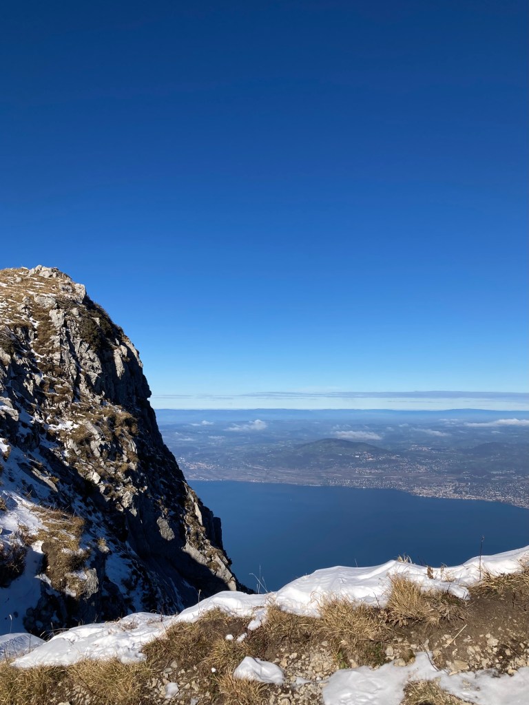 À pic dans le lac du pays de chez moi, bordé de prairies rectangulaires accrochées aux collines. Quelques touffes de nuages et deux traits horizontaux pour faire oublier la mer. Je suis resté là. J’ai oublié le couloir, oublié le reste, les heures immobiles creuses, perdues, fichues, englouties dans la gueule béante de la bête qui nous aspire patiemment centimètre par centimètre, jour après jour, les jambes, le tronc, la tête, le dernier cheveu et puis plus rien.
